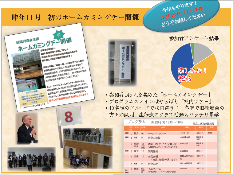 窓会との連携を深め、教育活動を実践してまいりま す。今後もいろいろな形での御支援を賜りますよう、 お願い申し上げるとともに、改めてこの「朝陽奨学