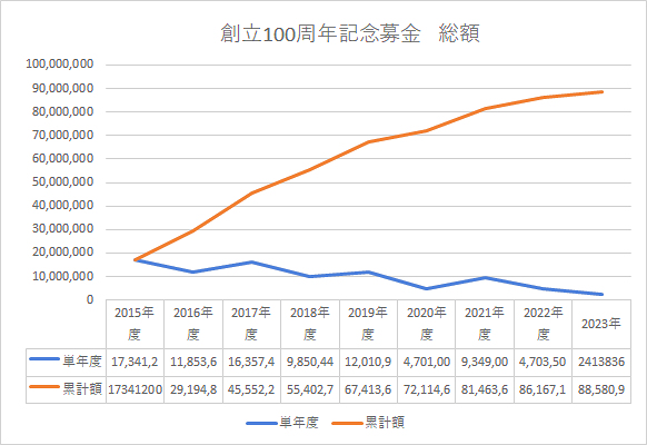 集計日 | 100周年募金累計金額 | 館山寮再建募金 |