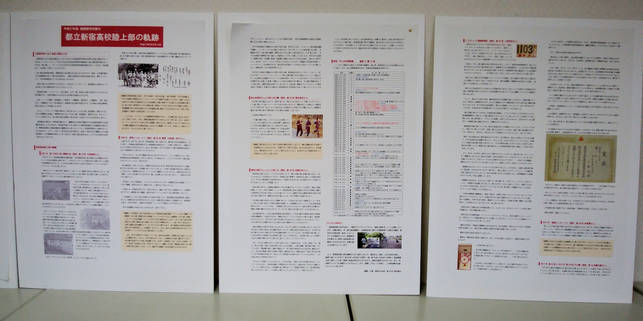 校内見学では校舎内や校庭をグループ単位で自由に見学します。またクラブ単位にコーナーを設けて、各運動部・文化部の歴史などを展示しました。