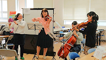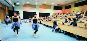 また、現役生のダンス部の演技があり、躍動感溢れるダンスで観衆を楽しませました。更に現役生の軽音楽部も演奏してくれました。軽快なリズムに乗って、聞いている方も大いに身体を動かしました。