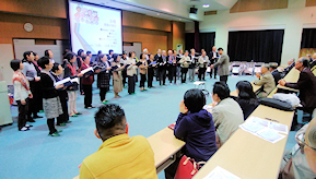 また創立68年を数える男声合唱団「六声会」が、ホームカミングデーでの初披露を行いました。平均年齢70代後半ですが、元気で張りのある歌声に、皆さん魅了されました。