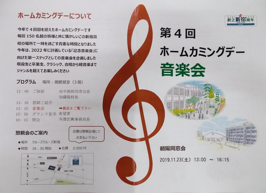 2019年11月23日(土)母校新宿高校で第4回のホームカミングデーが開催されました。