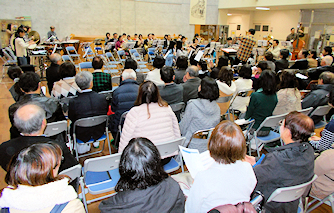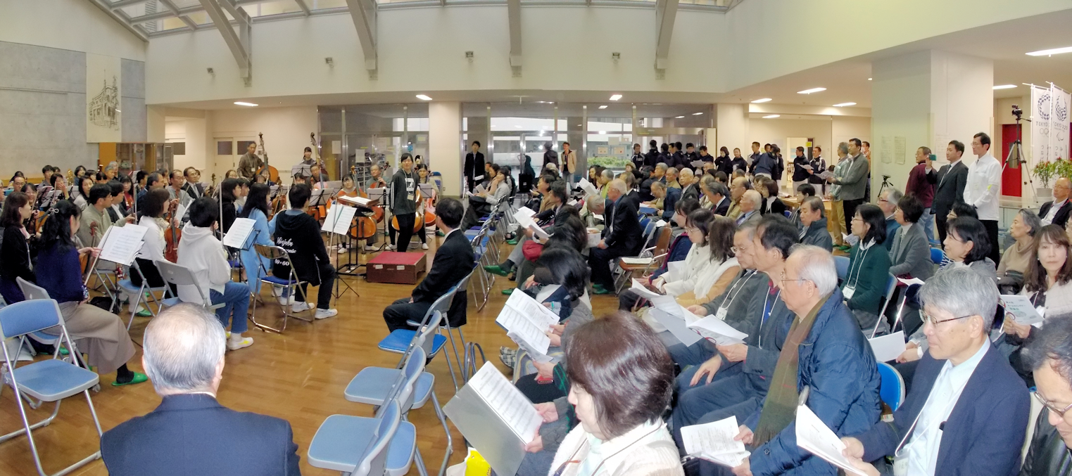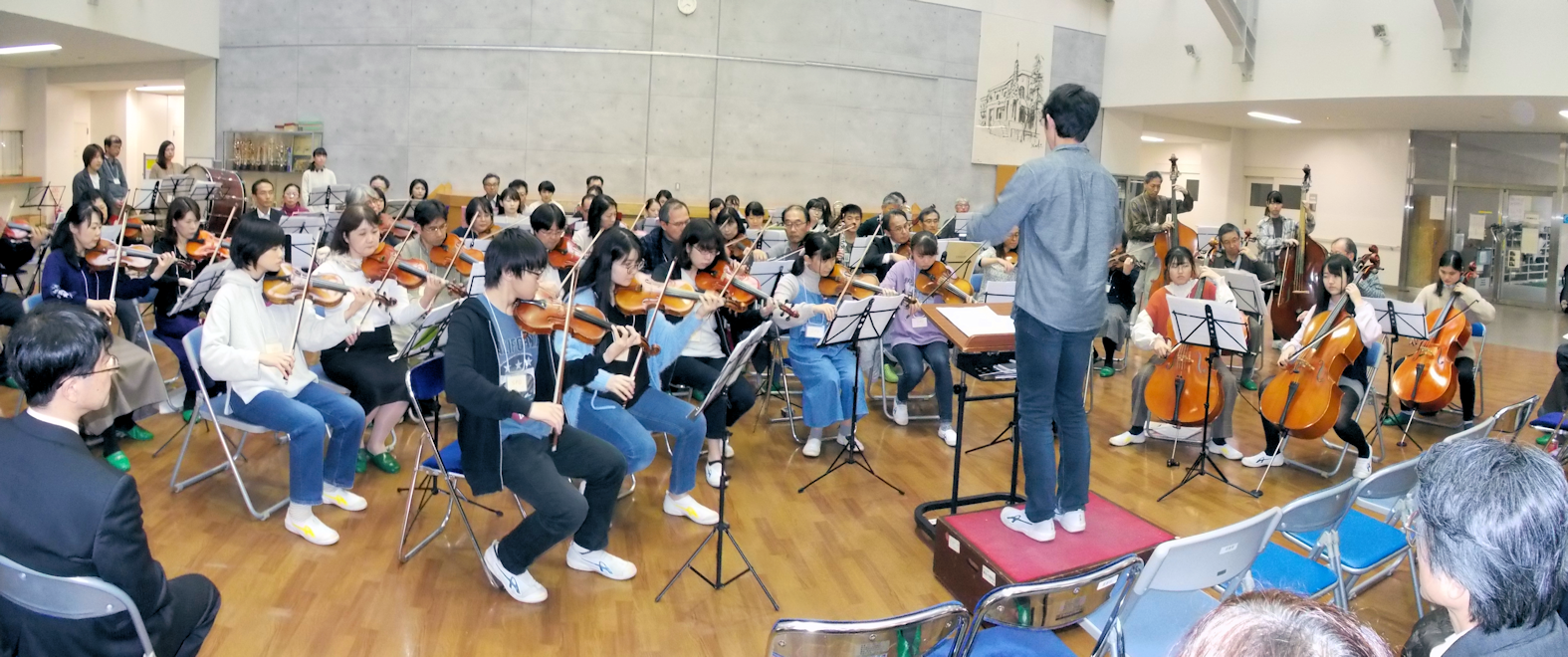 今年のテーマは音楽会。六声会、朝陽合唱団、軽音学部(現役、OB)、管弦楽部(現役、OB)の多数のご参加により、201名の参加者は楽しい時を過ごしました。