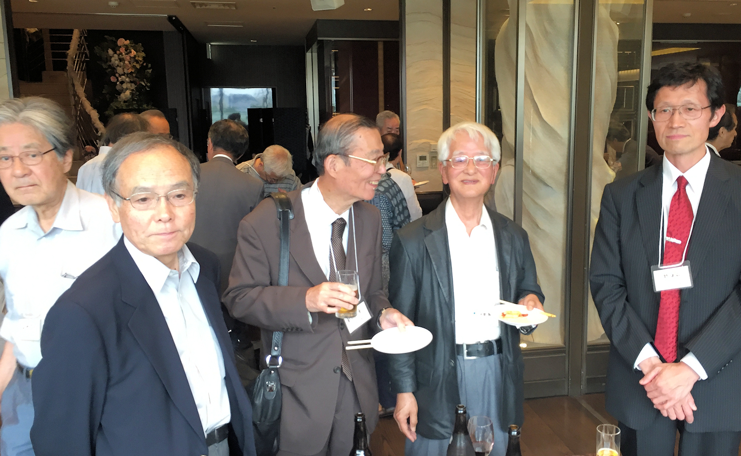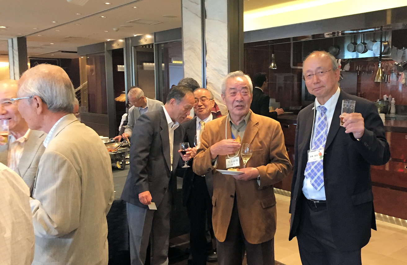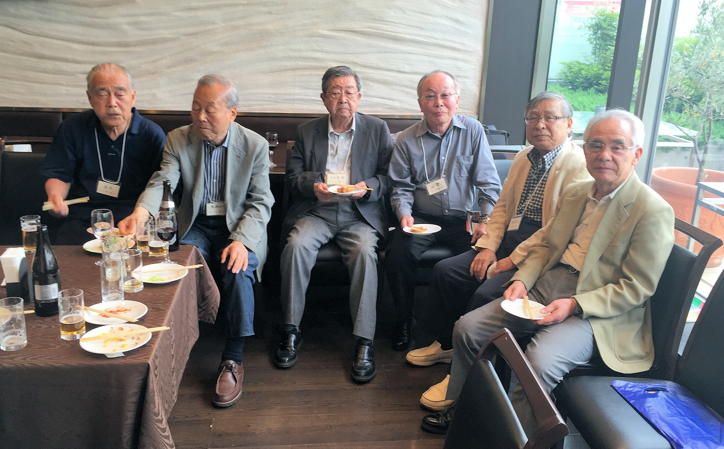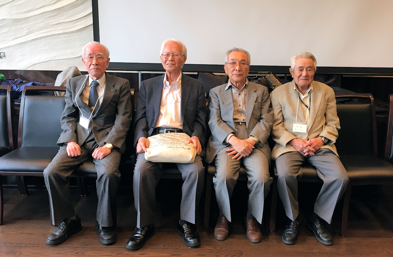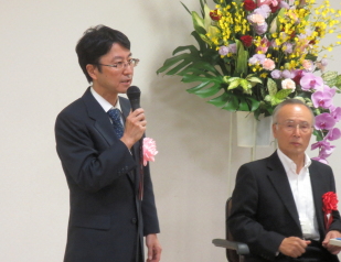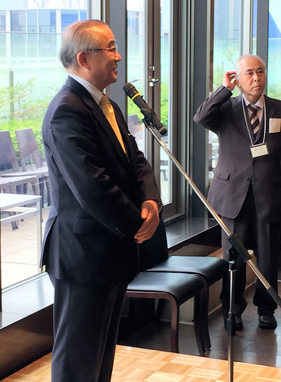 以下上から順に、吉村同窓会幹事長(7)による議事進行、新会長に選任された田中俊郎さん(17)ご挨拶、新副会長に選任された小野瑞城さん(34)ご挨拶と総会風景