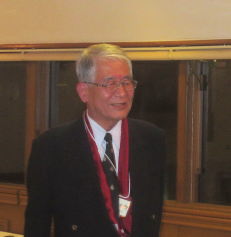 西出事務局長による式次第説明 | 橋本恵堅(よしみ)同窓会顧問による乾杯ご発声 |
