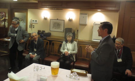 16回生の方々に大勢お集まりいただきました。 | 菊池光興副会長の中締めご挨拶 |