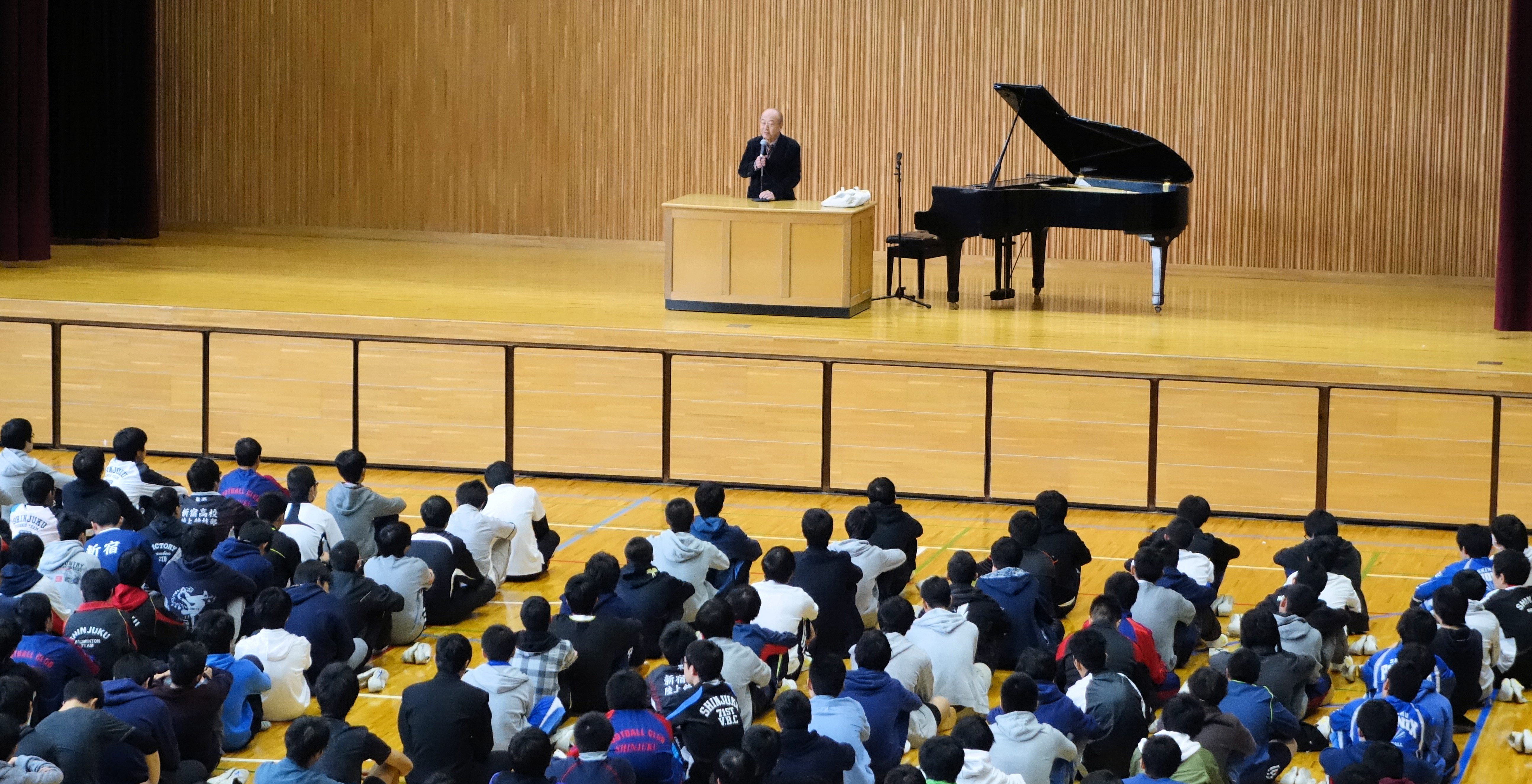 最後に、自分はことあるごとに「自分の音楽人生の原点は新宿高校」と言い続けているが、皆さんにも同じ思いを持つときが必ず来る。時代と環境で姿形は変わっているが新宿高校の本質は変わっていない、皆さんも新宿高校の3年間で後の人生に大切なことを得て欲しいし、得るに違いないと確信している、と締めくくられました。