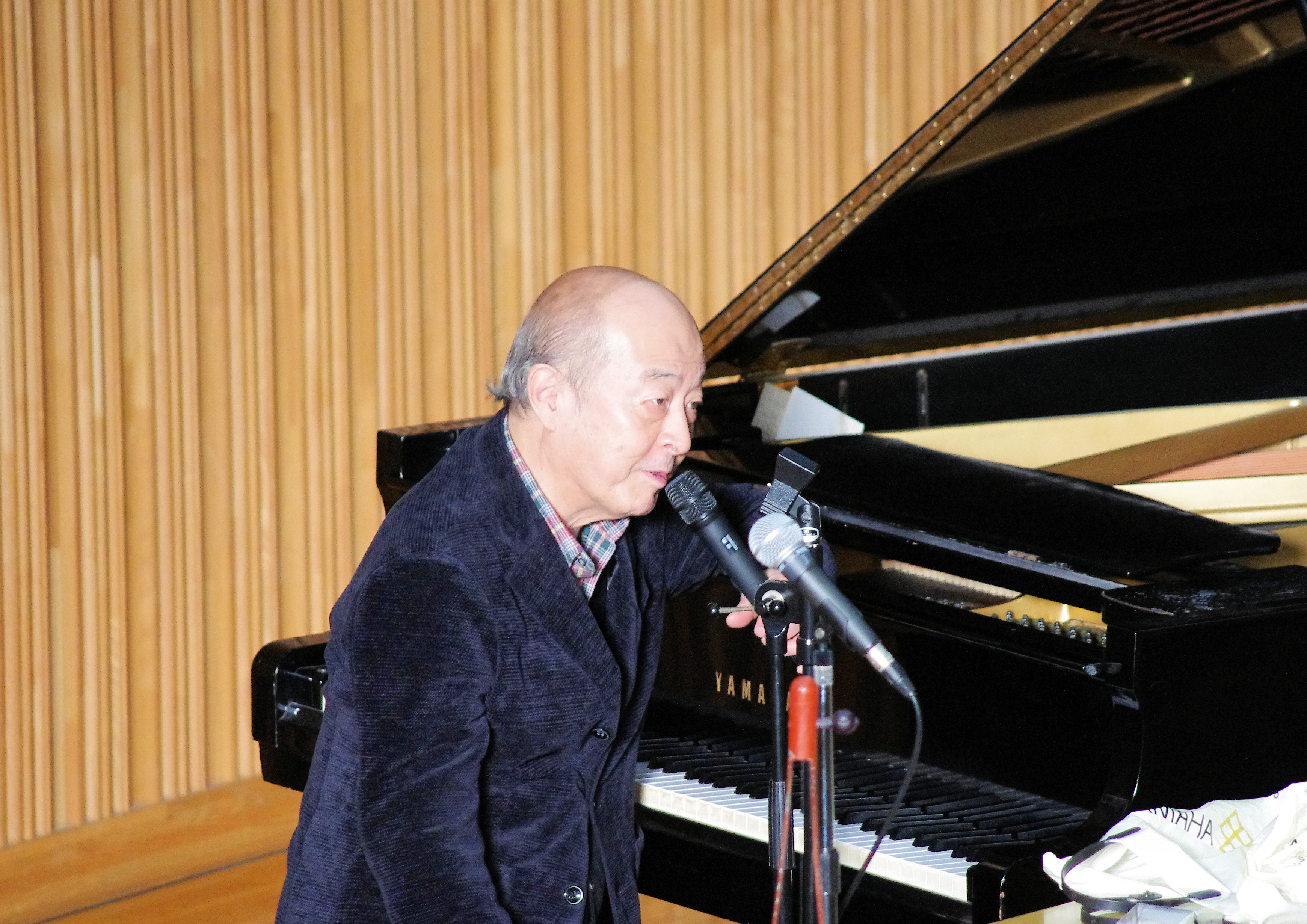 先ずは、ピアノでモーツアルトの曲の一節を弾きながら、それを例に音には引力も意思もある、作曲家は自分の考えを主張する音と対話しながら粘り強く曲を仕上げていくもので、これは異なった立場、意見を乗り越える人生そのものとも言える、と語りかけました。