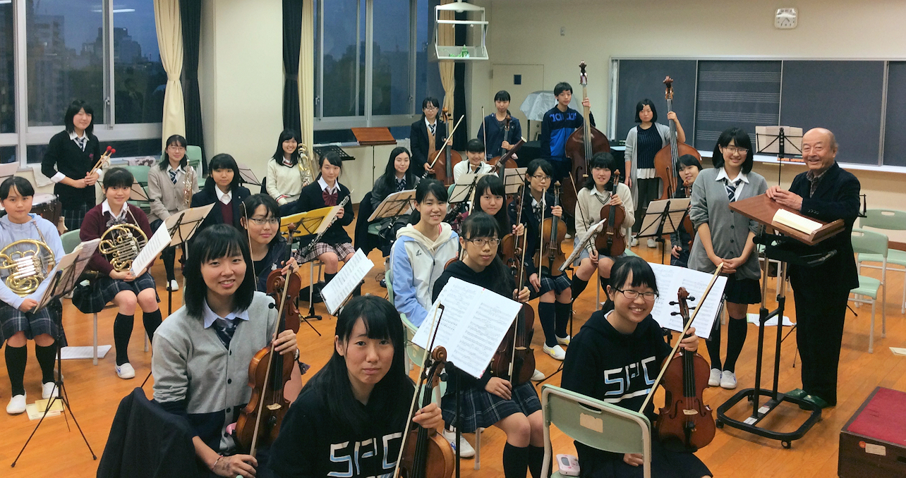その後、7階音楽室で現役管弦楽部の練習に足を運んでひと時の交流と記念写真撮影など、母校との絆を改めて確かめ合う有意義な半日を過ごされました。