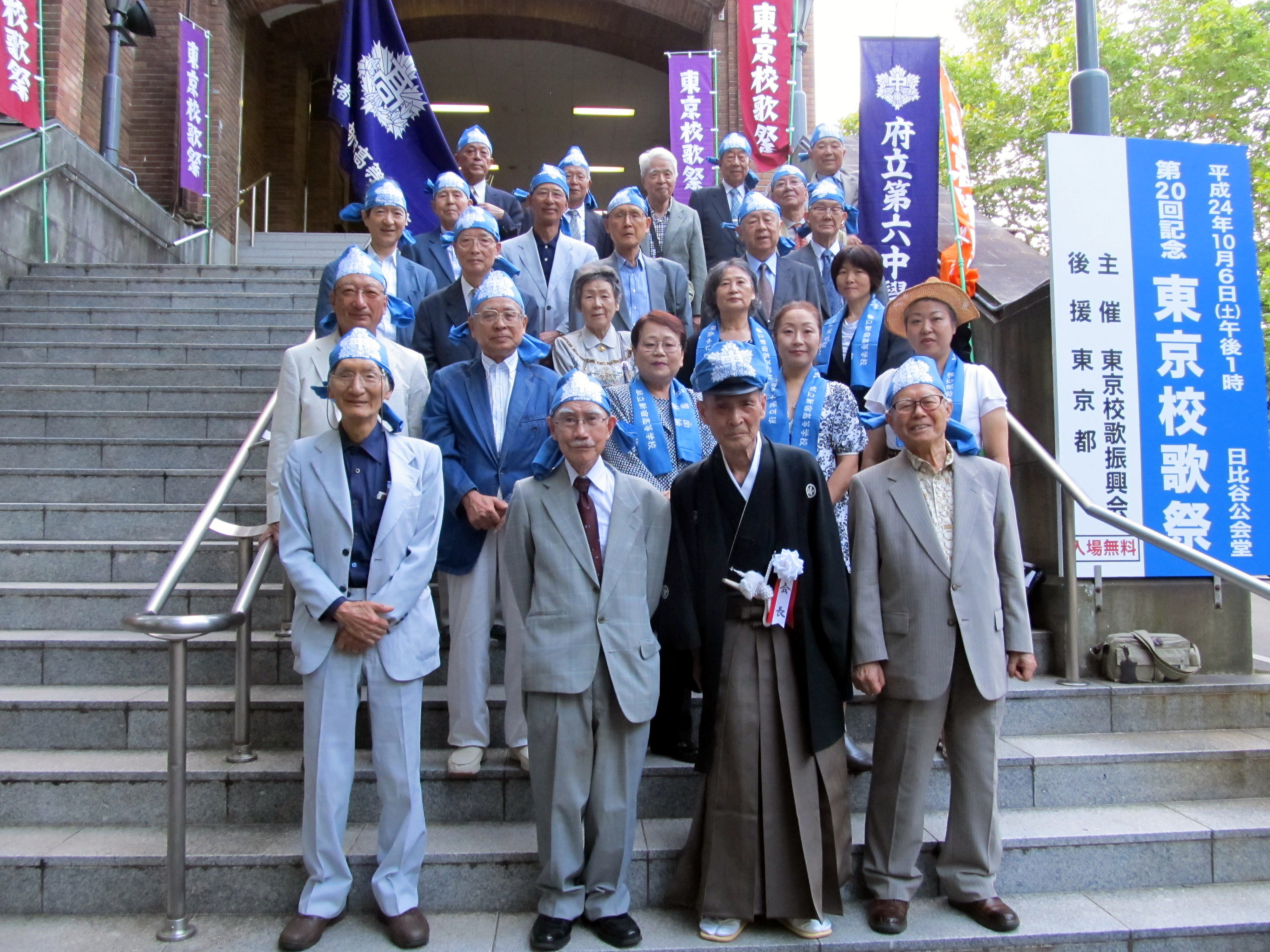 例年、いつも応援出演してくれていた現役の音楽部が、今年はちょうどこの日の この時間にNHK全国音楽コンクールに出場していたため、校歌祭は同窓生と現教員 だけの合唱になりました。 「いざ進め 新宿高校」の横断幕をバックに掲げ、六声会の張りのある声を中核に皆の 心を一つにして、3曲を会場いっぱいに響かせました。