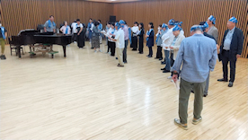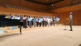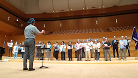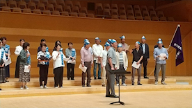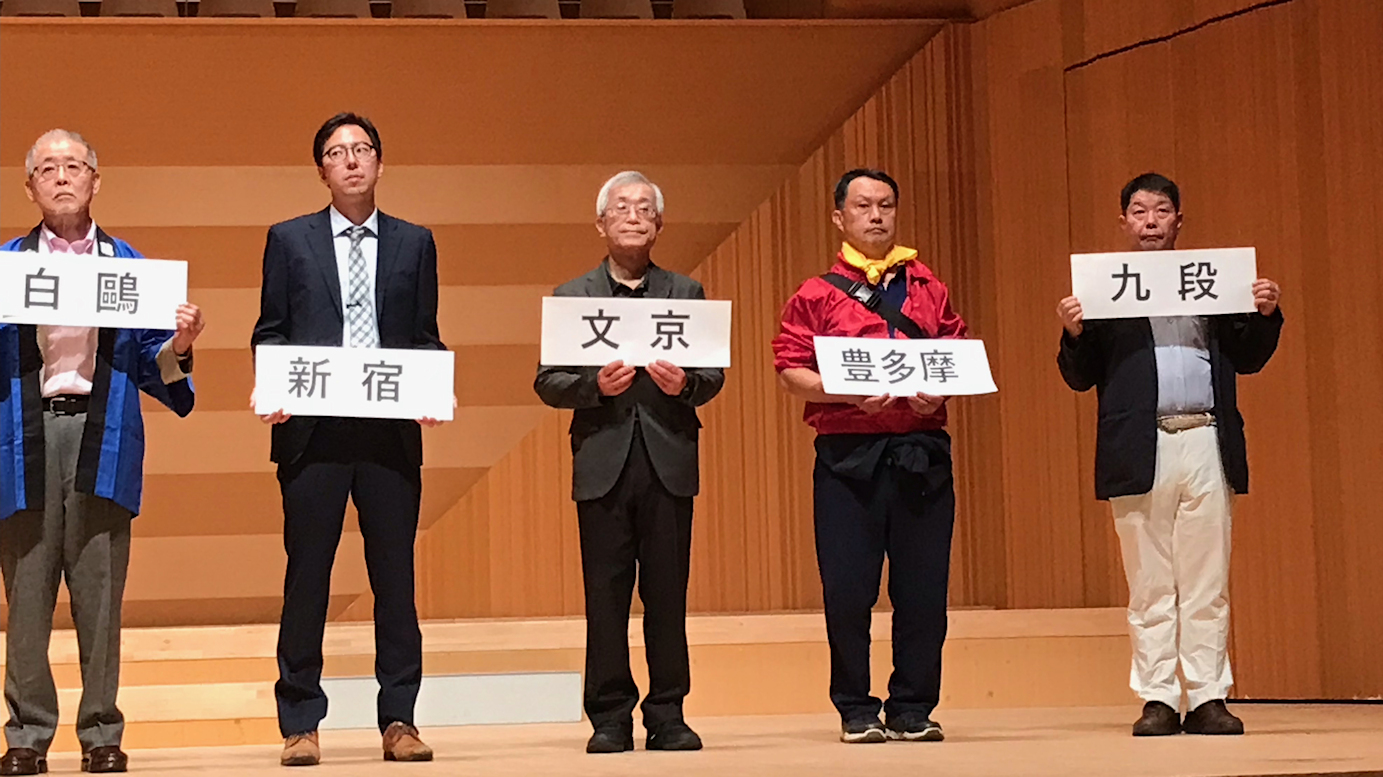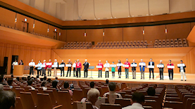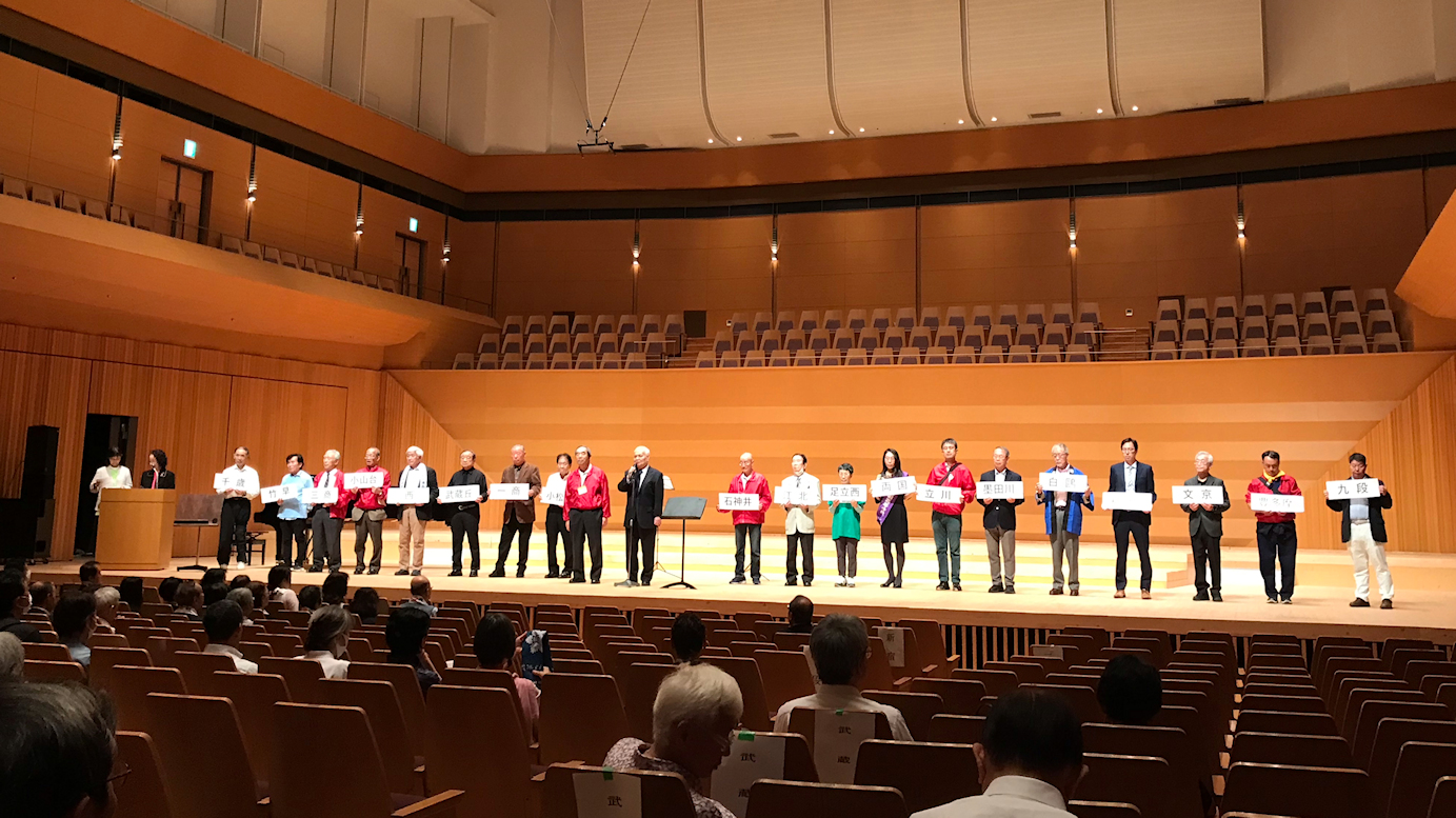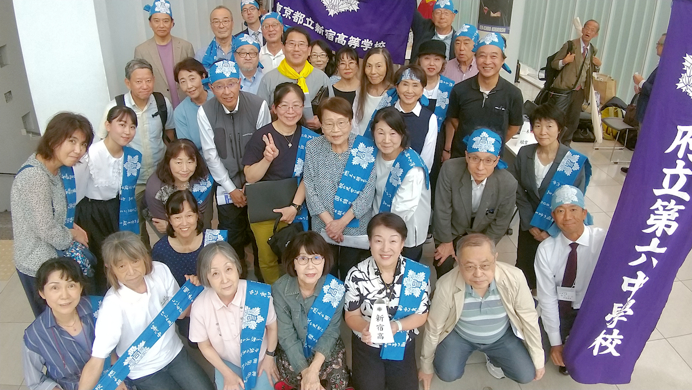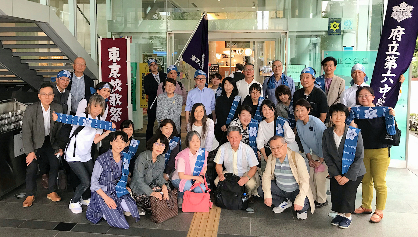 朝陽合唱団を中心とする同窓会メンバーが、新宿高校校歌、六中健児の歌、の歌声を会場一杯に響かせました。