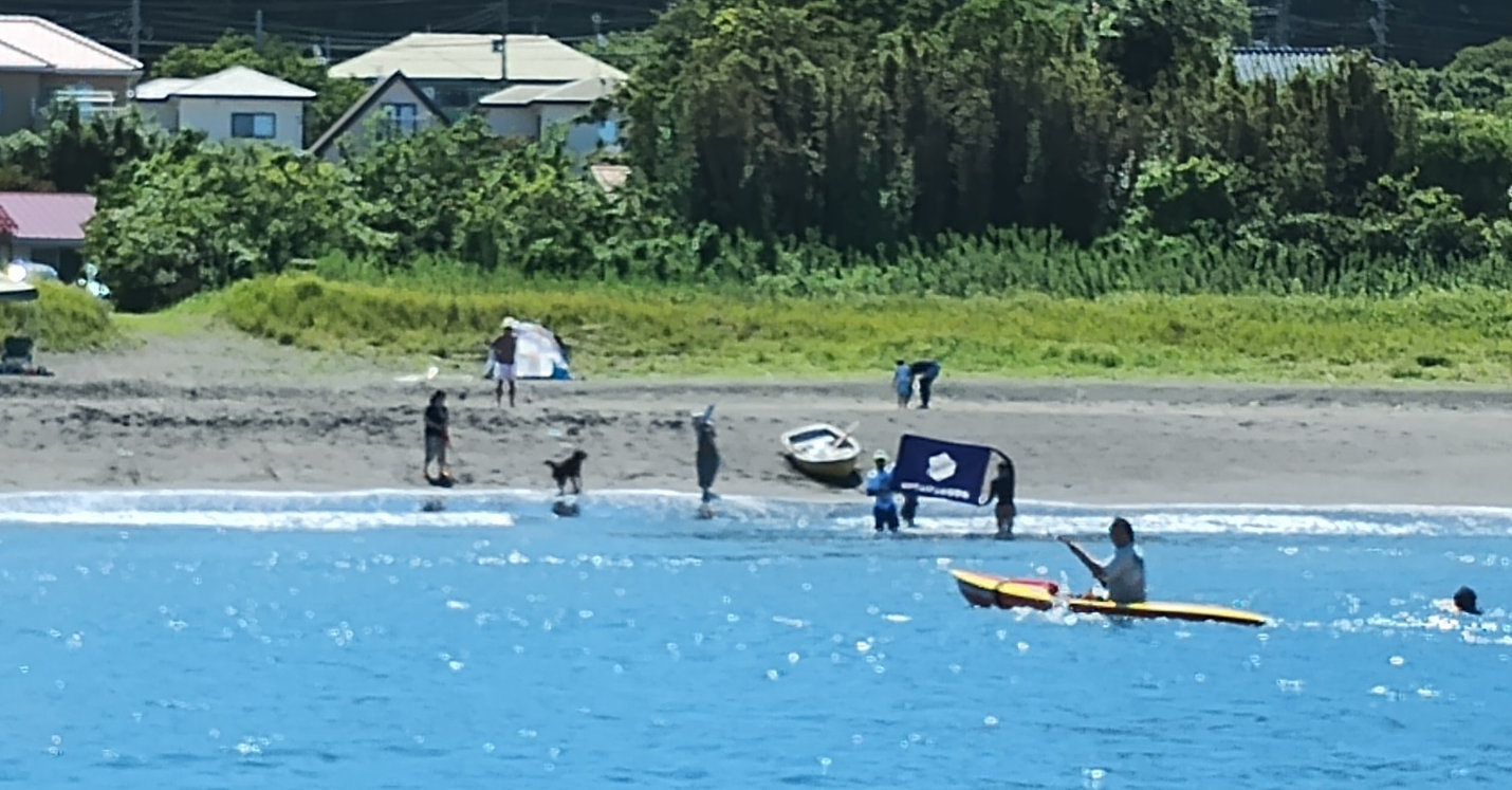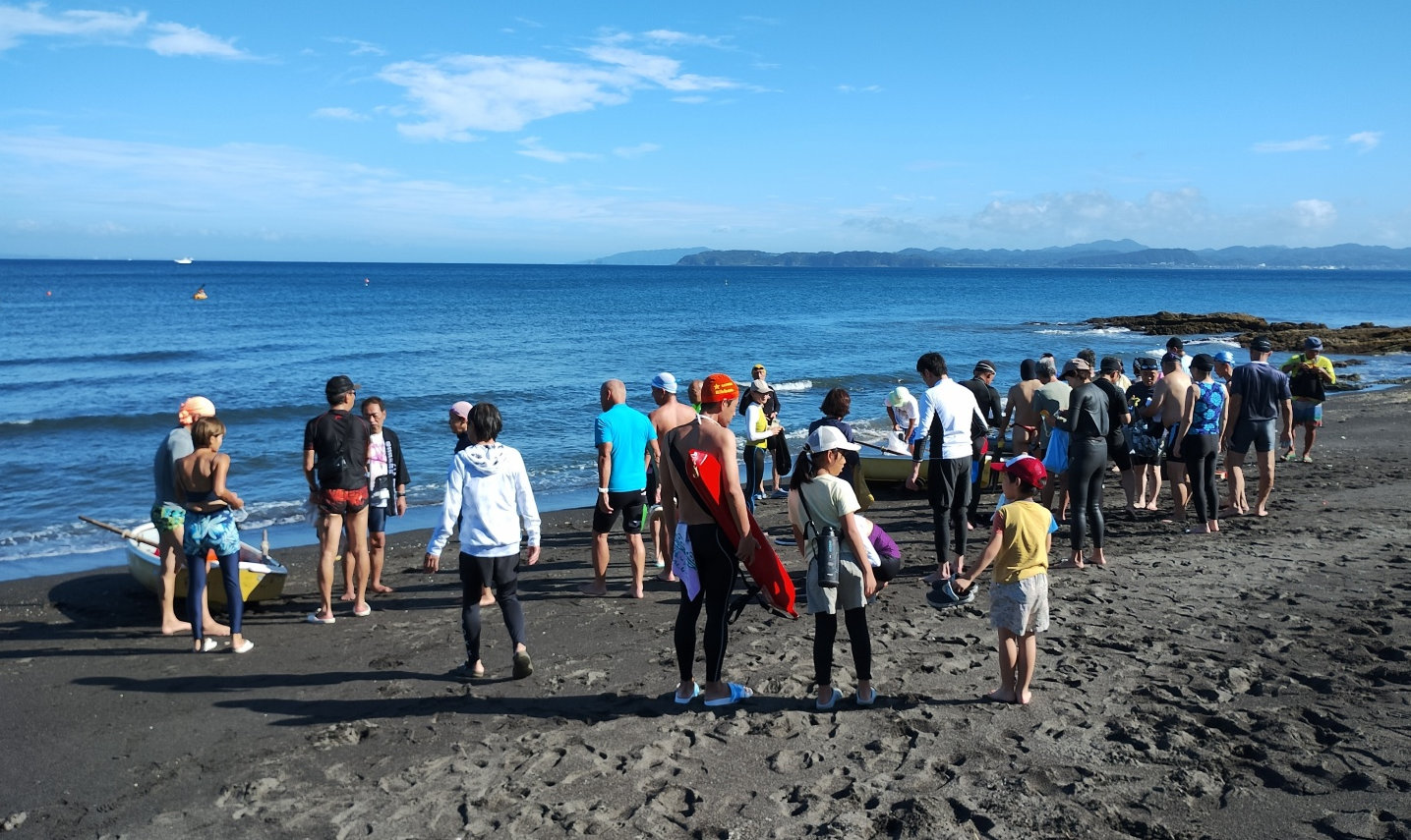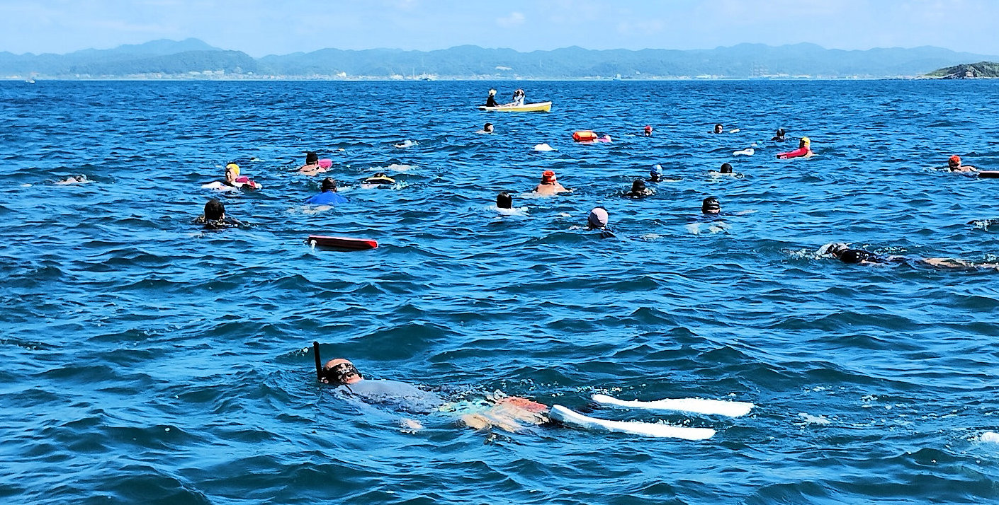 「遠泳を初めて拝見しました。富士山を拝みながら進む隊列は美しく、また浜に到着した皆様