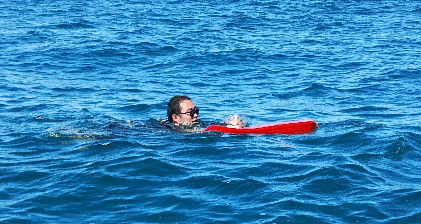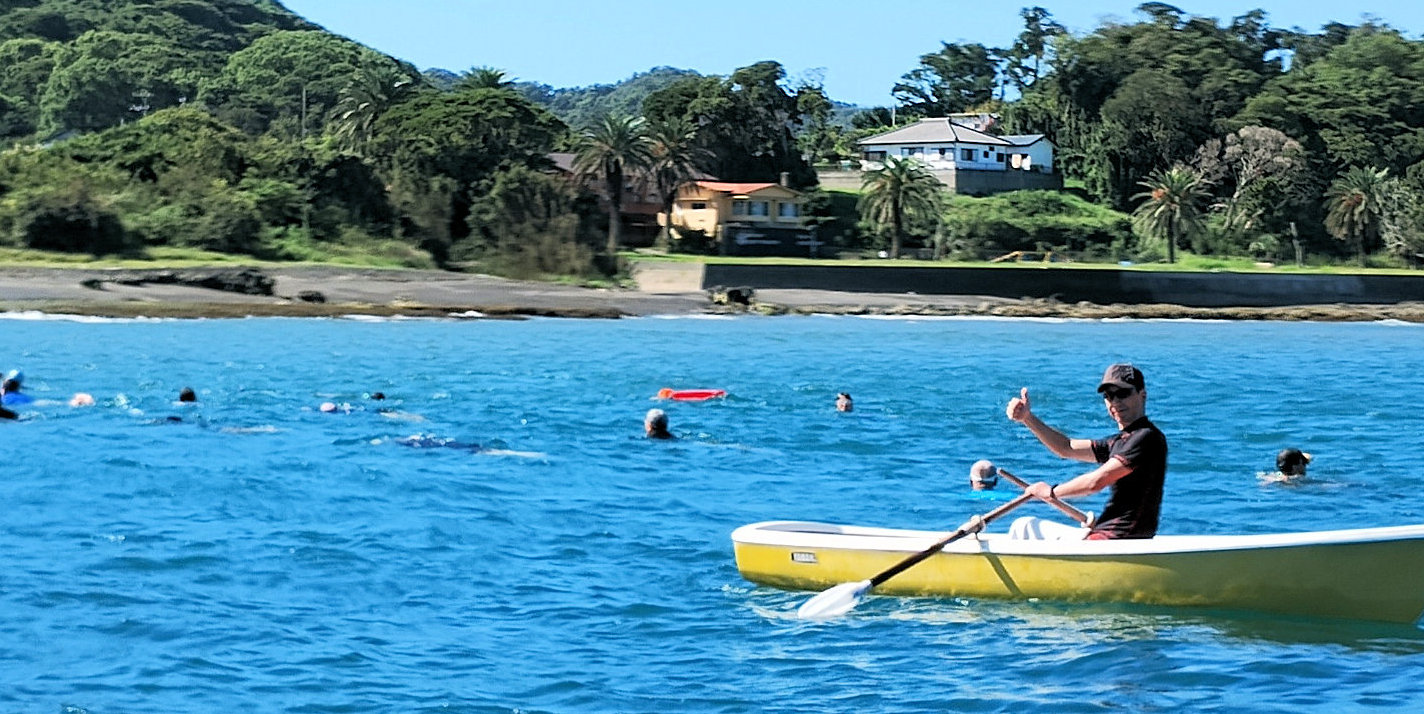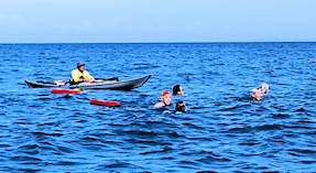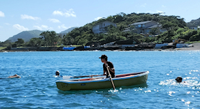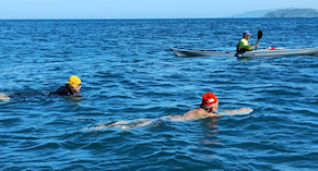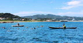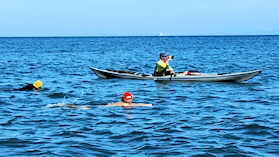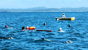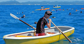 遠泳の先導者役 立川高校40期加藤さん