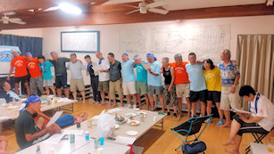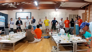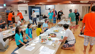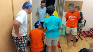 大遠泳前日のブリーフィング前のひと時(その1)