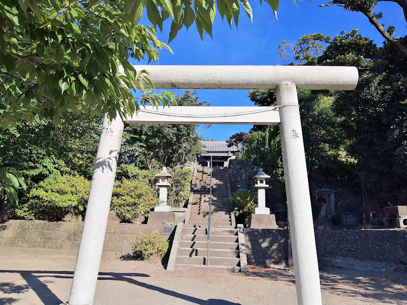 立派な石作りの鳥居、石段もかなりの高さ