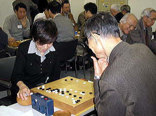 お招きして指導碁をお願いしました。参加された皆さんは学生時代に戻って、溌剌と碁盤に