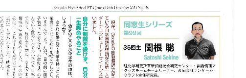 母校PTA会報に「同窓生シリーズ」として紹介された各分野でご活躍の同窓生の紹介です。発行月 | 号 | 卒業生 卒回 | 職業・経歴 |