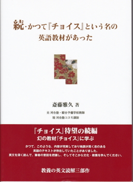 後に同じ駿台で『チョイス」を教材に英語を教えた経験を持つ齋藤さんは、本書で『チョイス』を参照しながら本文のより深い理解のために[考察]を加え、この[考察]を端緒として読者が本格的に書物に向かい「知の世界」に足を踏み入れてくれること、そして何よりあの懐かしい『チョイス』の雰囲気を味わって頂きたいと願って本書を執筆したとのことです。
