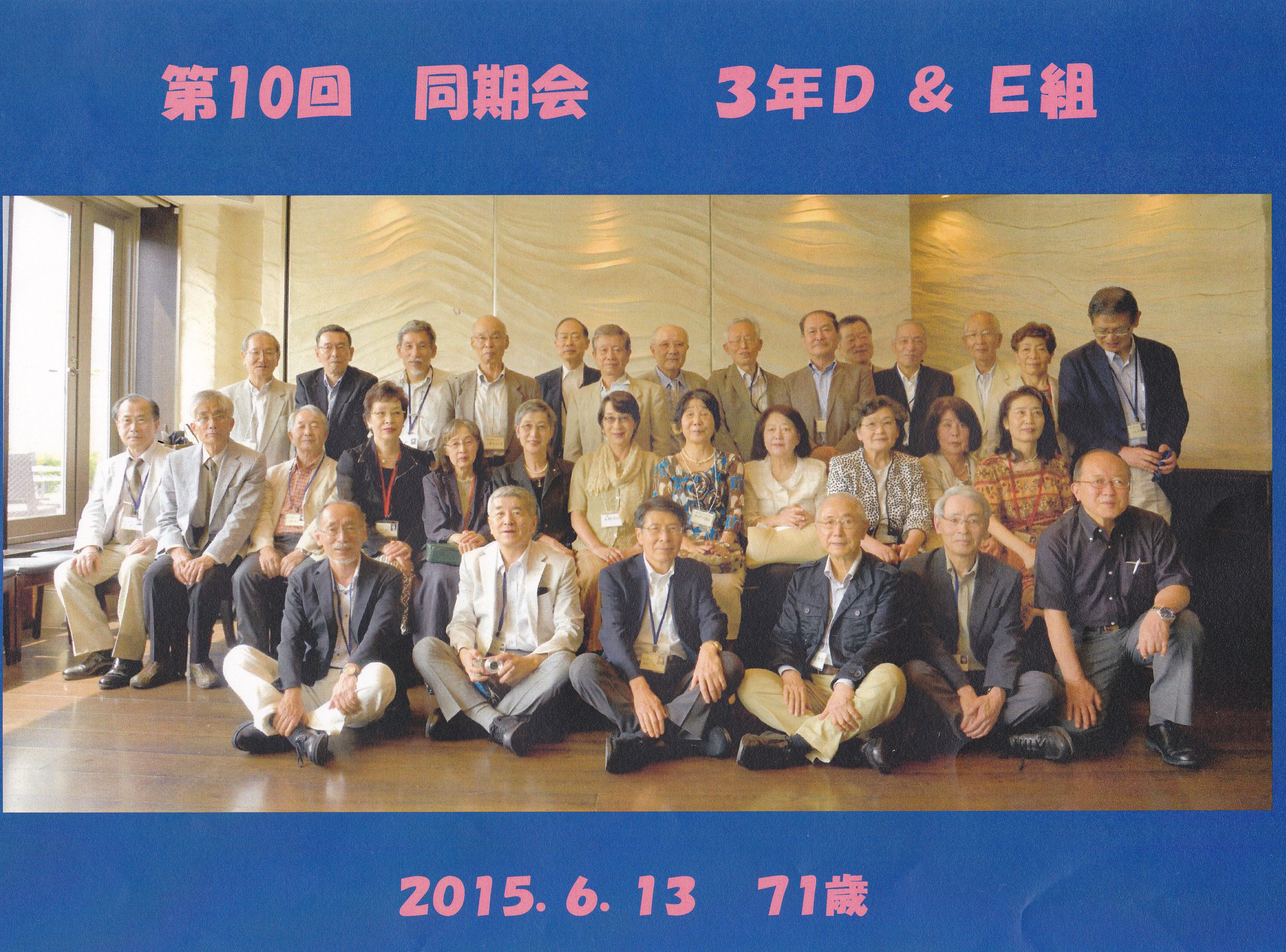 司会はクラス幹事持回りによって今回はF秋山小南君とC引間美登里さん。前回同期会から今日までに亡くなった旧友に黙とうを捧げたのち、同窓会長を務めている垂水尚志君の挨拶、母校100周年記念事業実行委員長の24回宮崎直道さんの挨拶。待ちに待った乾杯発声は恒例によって最遠方参加者の中川英邦君。セレモニーは初参加者、久々の参加者の挨拶以外は特になく、参加者は次々と話し相手を変えながら、在学時代の思い出話に、お互いの近況に、健康を確かめ合いつつ歓談に花を咲かせた。そして、あっという間に時間は去り、一・二次会合わせて4時間、みんなの顔が赤く染まる午後4時、次回はまた元気で会おうとお互いの肩をたたき合って散会した。