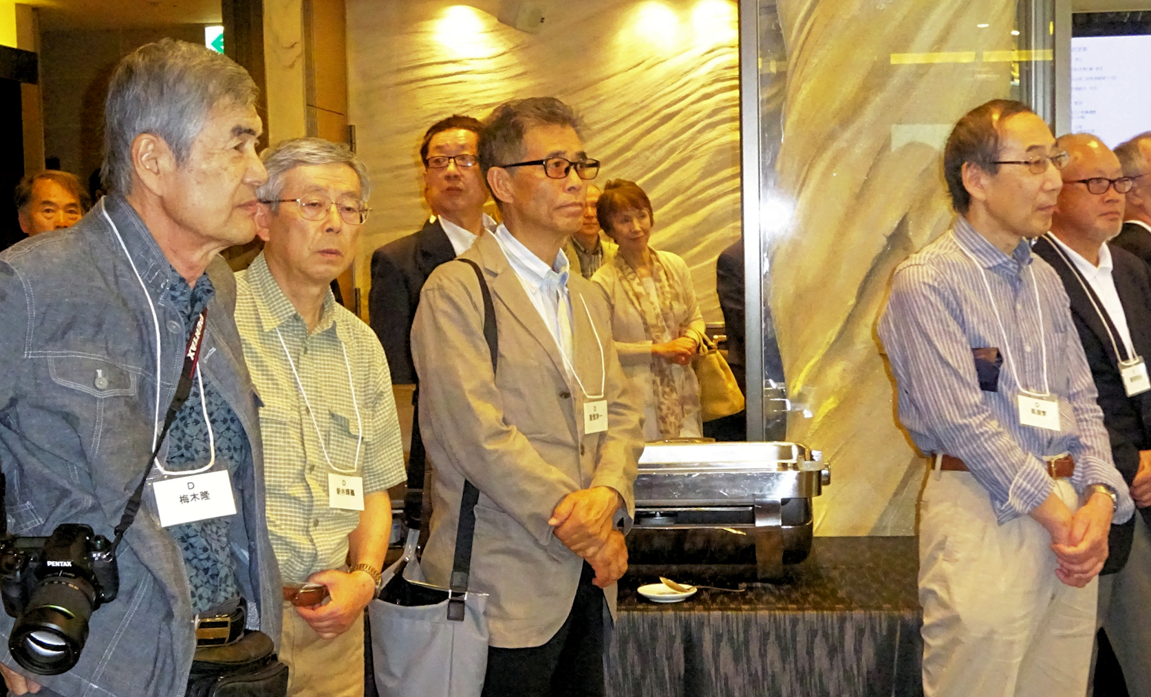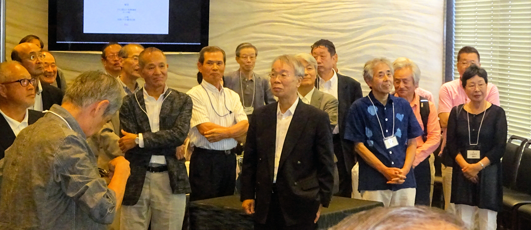 17回卒ながら我々18回の会合に参加くださった田中俊郎新同窓会長からは「創立百周年記念事業で在校生の奨学金充実や、館山寮の改築などに取り組んでいる、ぜひみなさんにも寄付金の協力をお願いしたい」とご挨拶。
