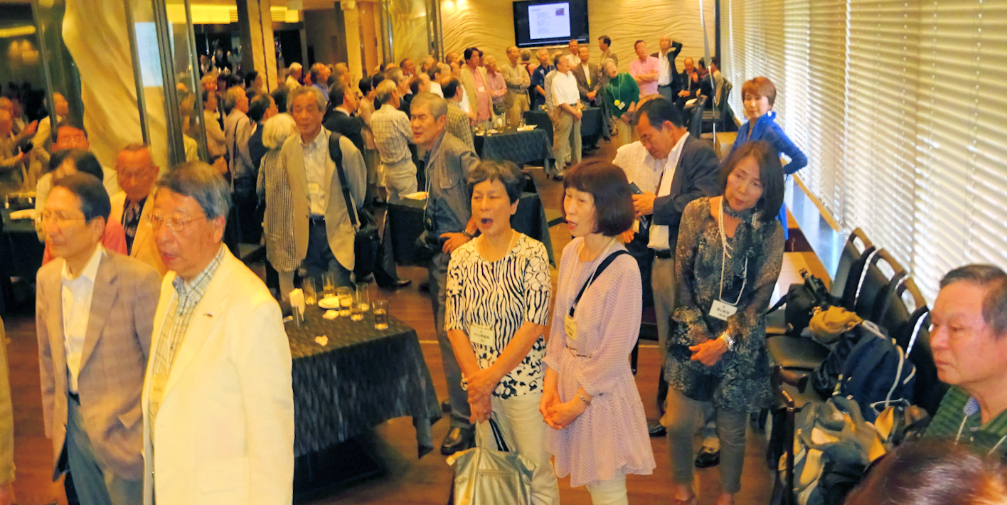 第18回生の卒後50周年同期会が平成28年6月11日、クルーズ・クルーズ新宿で開かれ、古稀を目前にした136人が懐かしい友人たちとの再会を喜び合った。