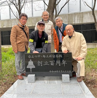 その間、プレーしないOBたちは現役の女子マネージャーたちに案内され高校の創立百周年記念碑を見てから校舎内を見学しました。