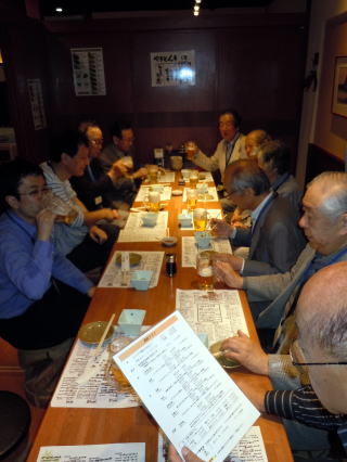 対局後は場所を替え、近くの東京オペラシティビルの中の居酒屋で祝賀会。囲碁