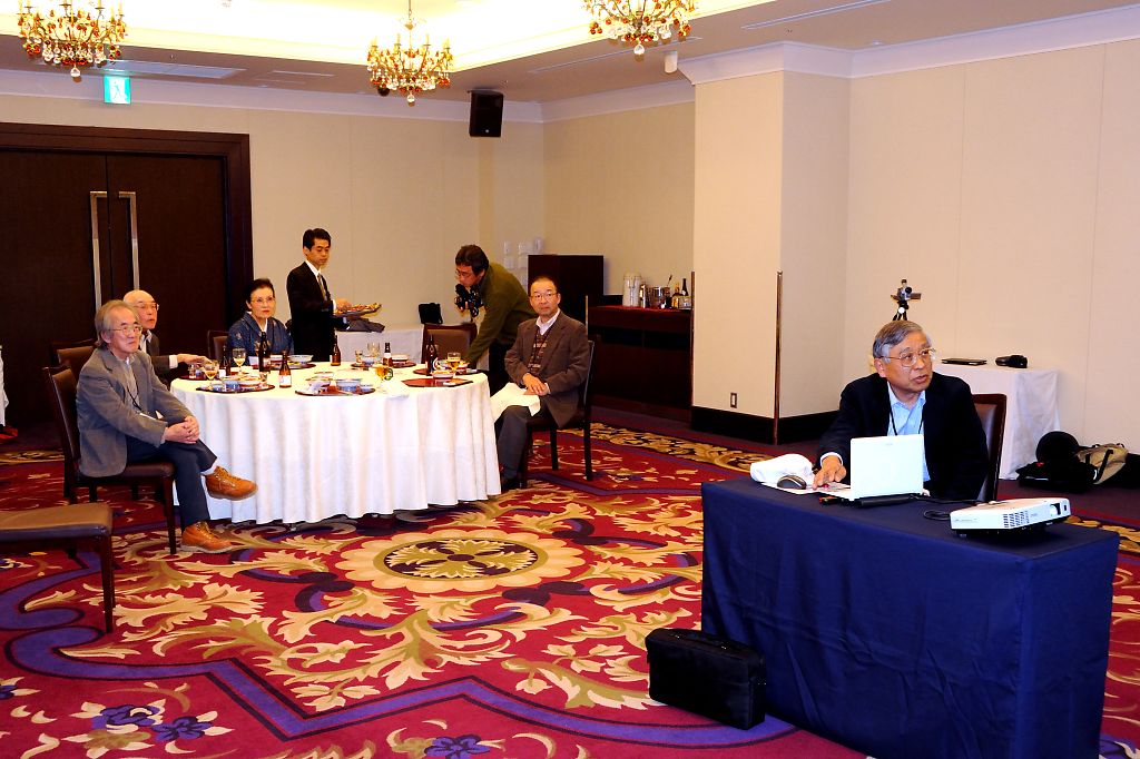 橋本氏による「母校の現況」のプレゼンテーションで圧倒的な女子の入学者数の多さに改めてビックリしたり「朝陽祭」の元気な姿にホッとしたりしました。実はこの総会は隔年11月の第二土曜日に開催されるはずでしたが開催年の昨年はよんどころない事情で一日ずらしての日曜に開催となり、会員の多くの方の都合が付かず少人数の開催になってしまいました。この場をお借りして参加を予定していらした多くの方々に深くお詫び申し上げます。その欠席連絡を下さった方々の近況通信欄を参加者で見ながら次回はお会いしたいものと話をしました。
