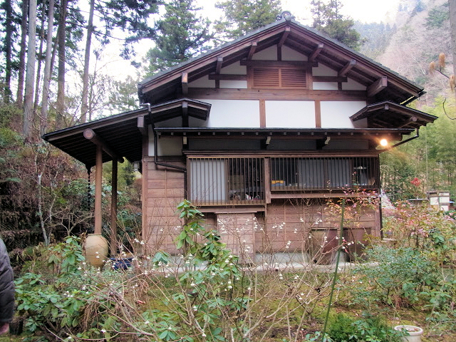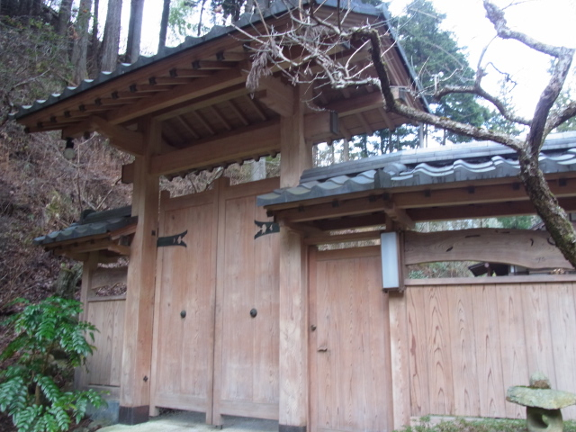 階段を上って山荘へ りっぱな門構え