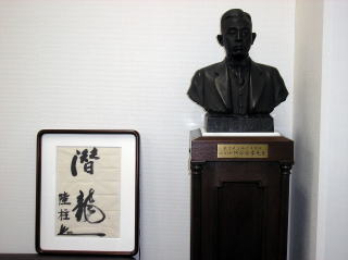 先日7回生の方から「朝陽同窓会で保存して下さい」と初代阿部校長が書かれた 書が送られてきました。お父様が大正14年頃から昭和17年ごろまで、阿部校長の もとで府立六中の先生をなさっていたそうです。 そのためこの書が7回生のお宅に大事に保存され、今般朝陽同窓会に寄贈されま した。なお陸柱は阿部先生の号です。