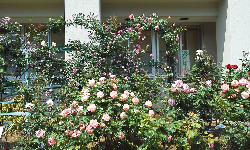 学校のバラが満開