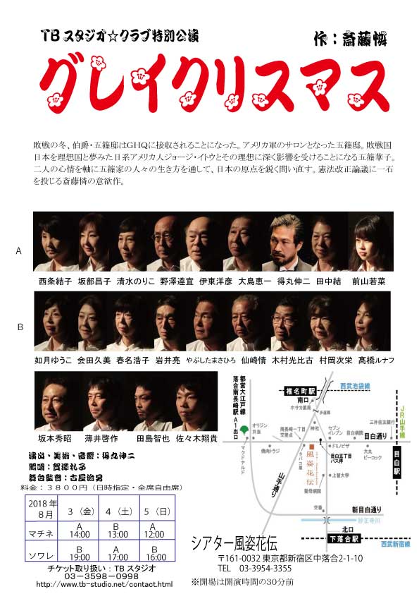 私はA組・B組の両方に出ます。 戦後の混乱期の日本を舞台に、伯爵・五條家に降りかかる様々な出来事。五條家と彼らを取り巻く人々との人間模様を描く、重厚な作品です。