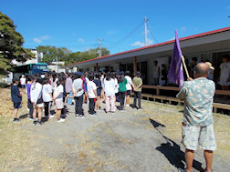 退寮式の後、バスに荷物を積み終わったら、バスの出発時刻まで、お世話になった班持ちのOB/OG達と、しばし別れの名残惜しい時間を楽しみます。