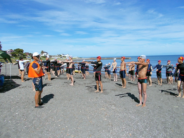 2日目には沖のブイを回る小遠泳、3日目に最大のイベント大遠泳です。