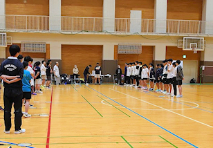 これは、年2回、母校体育館で卒業生同士がバドミントンの交流試合を行うというイベントで、1970年代中盤から続いています。あいにくコロナ禍の3年間は開催されませんでしたが、この度、ようやく復活の運びとなりました。幹事の清水達記さん・梁取祐輔さん(62回生)の尽力と現役の協力のお陰です。