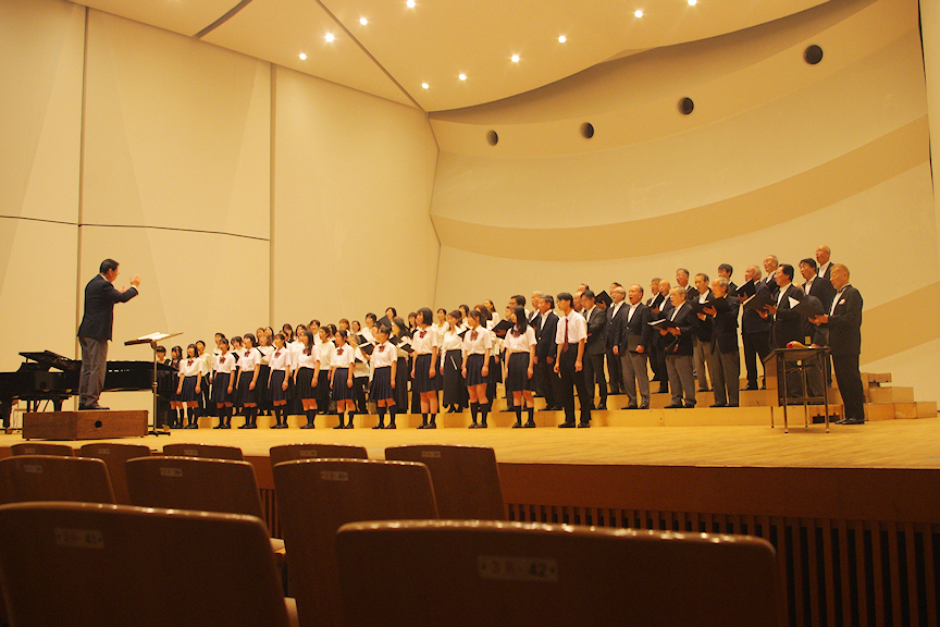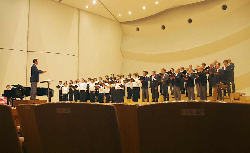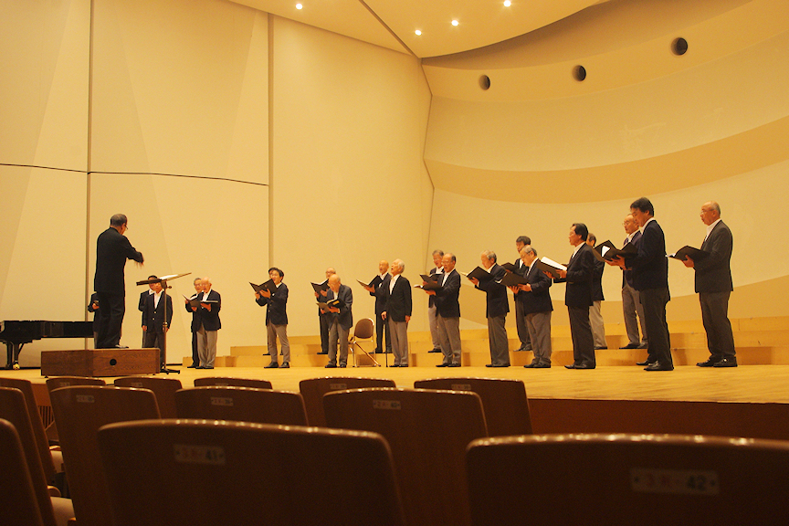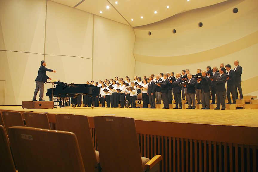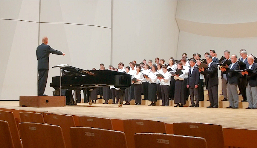 小峰先生指揮、朝陽合唱団ゆかりのアカペラ曲演奏