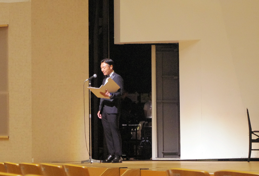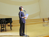 同窓生朝倉環さん作詞・池辺晋一郎さん作曲の「ひとしお物語」を同窓生樋本英一さんの指揮・大野久美子さんのピアノ伴奏で朝陽合唱団と教職員で熱唱